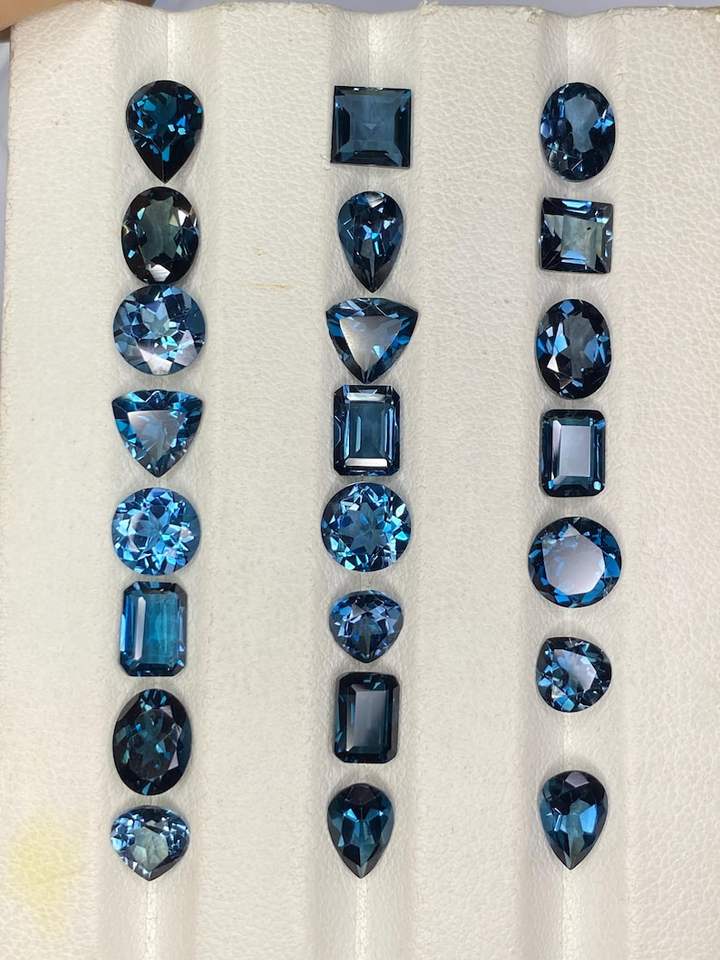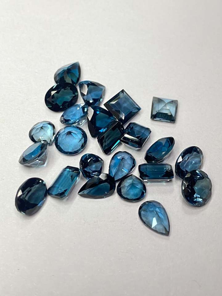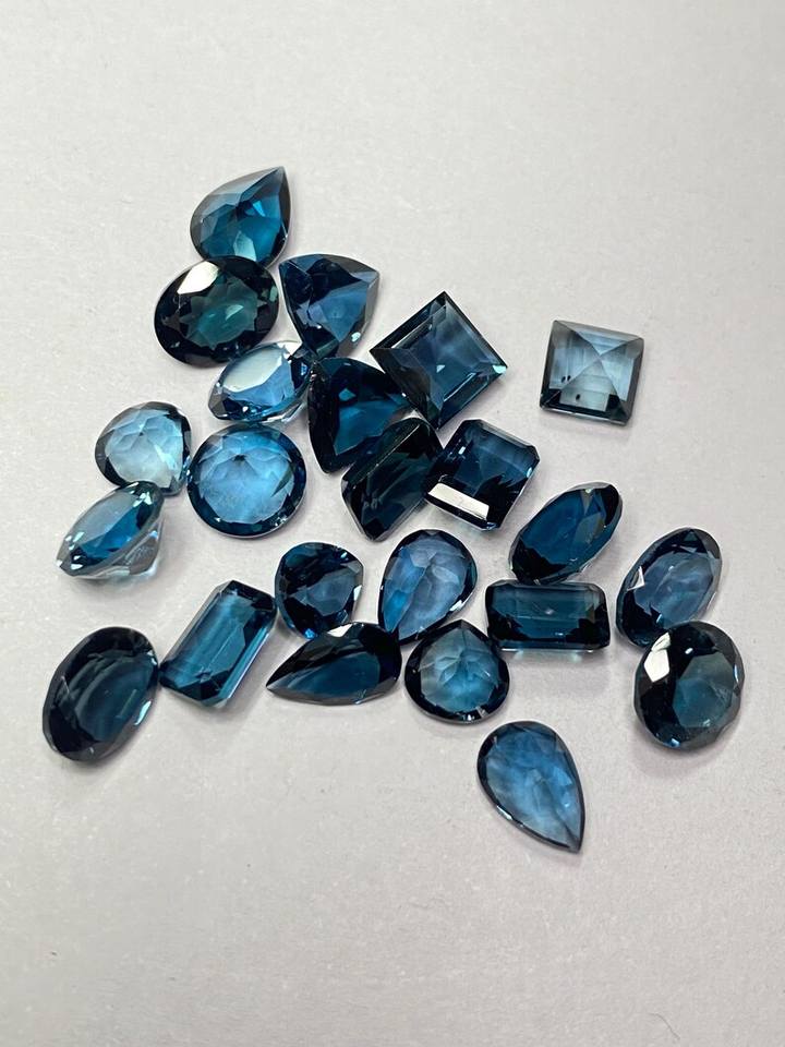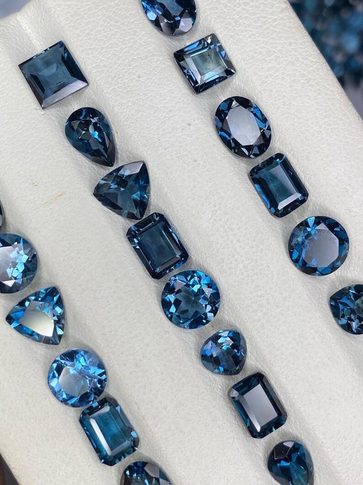พลอยลอนดอนบลูโทแพซแบบคละขนาด 6x4 มม. ถึง 12x16 มม. พลอยธรรมชาติสำหรับทำเครื่องประดับ