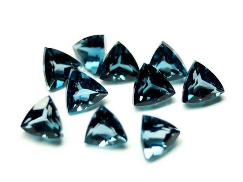 พลอยบลูโทแพซลอนดอนทรงทริลเลียนคัท แท้ คุณภาพดี ขนาด 3 มม. ถึง 10 มม. ขายส่งยกล็อต