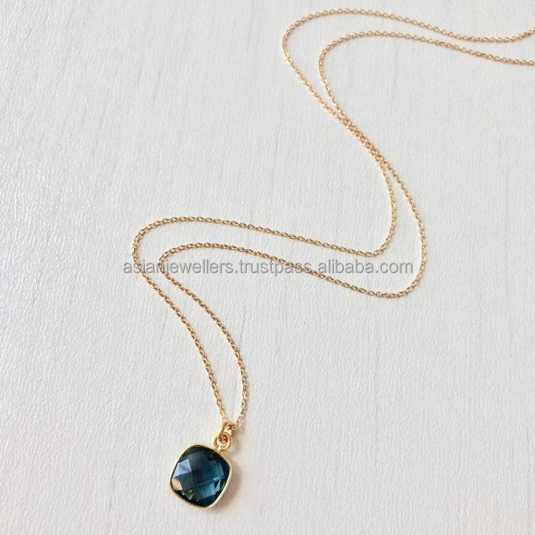 London Blue Topaz ควอตซ์พลอยจี้เงินแท้925ชุบทองเครื่องประดับ