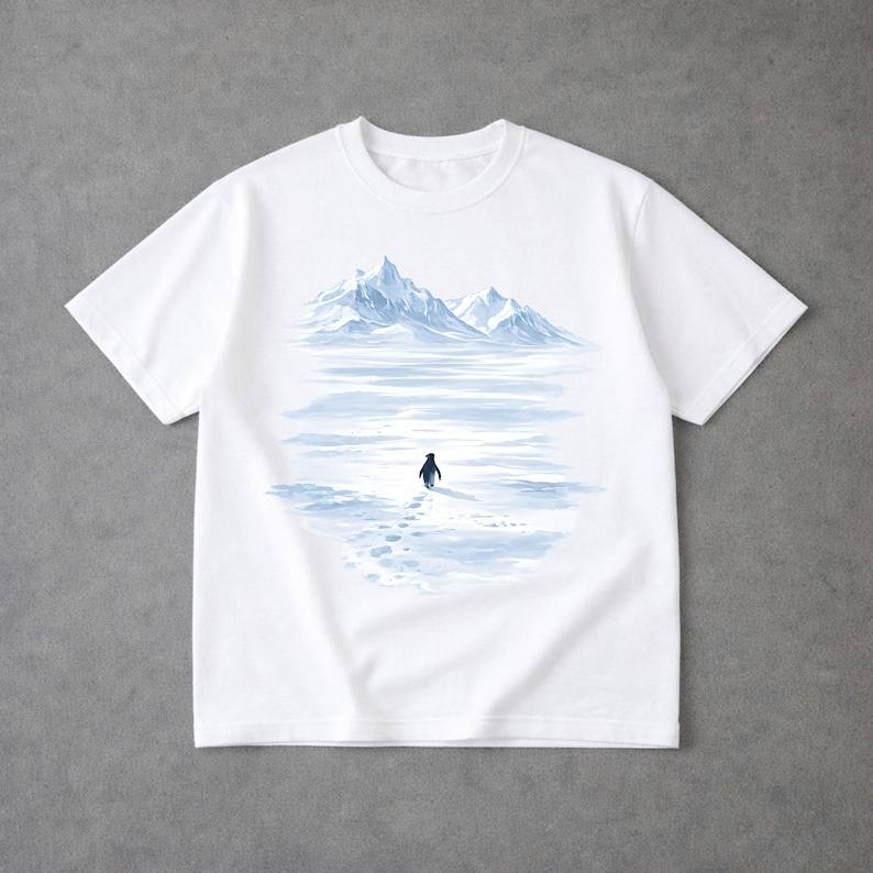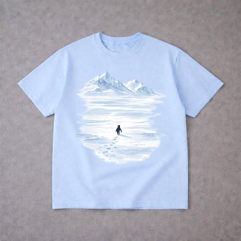 เสื้อเชิ้ตลายเพนกวินเดินเดินทางขึ้นภูเขา เสื้อยืดลายเพนกวินสุดเทรนดี้ เสื้อเพนกวินเดินป่าสำหรับนักผจญภัย