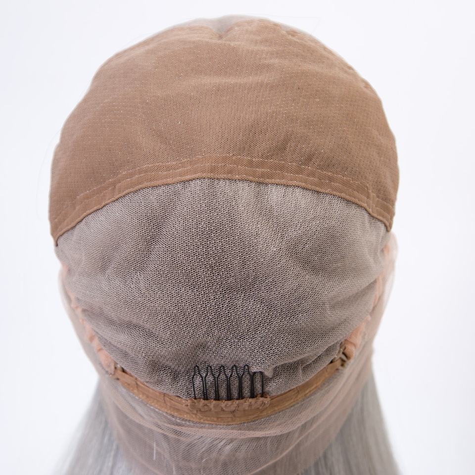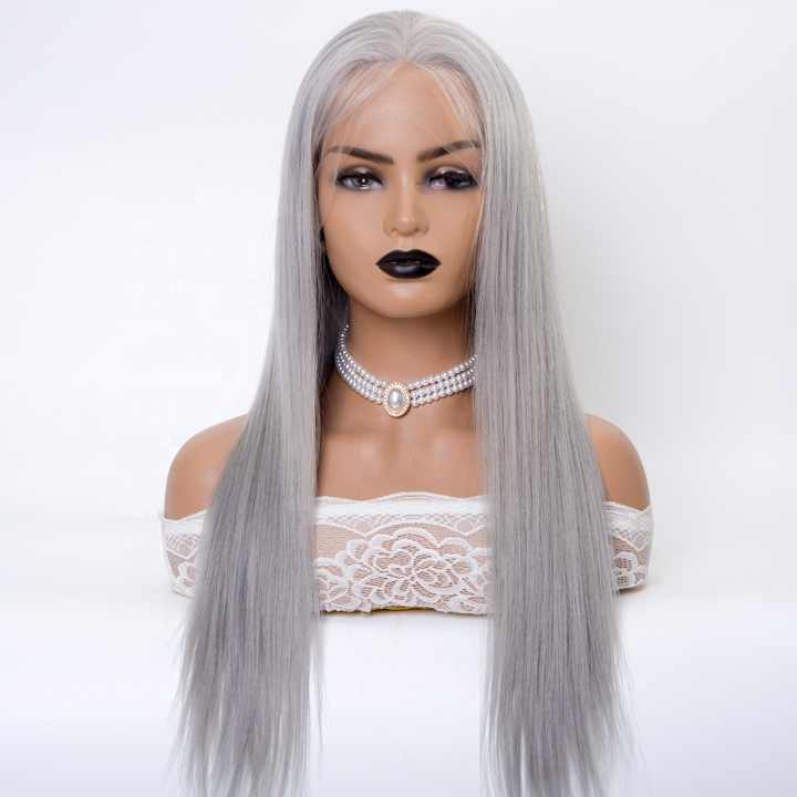 วิกผมตรงสีเงินเทา ยาว 18 นิ้ว ผมแท้จากยุโรป ฐานลูกไม้โปร่งใสแบบ HD วิกผมแบบเต็มศีรษะ ขายส่ง