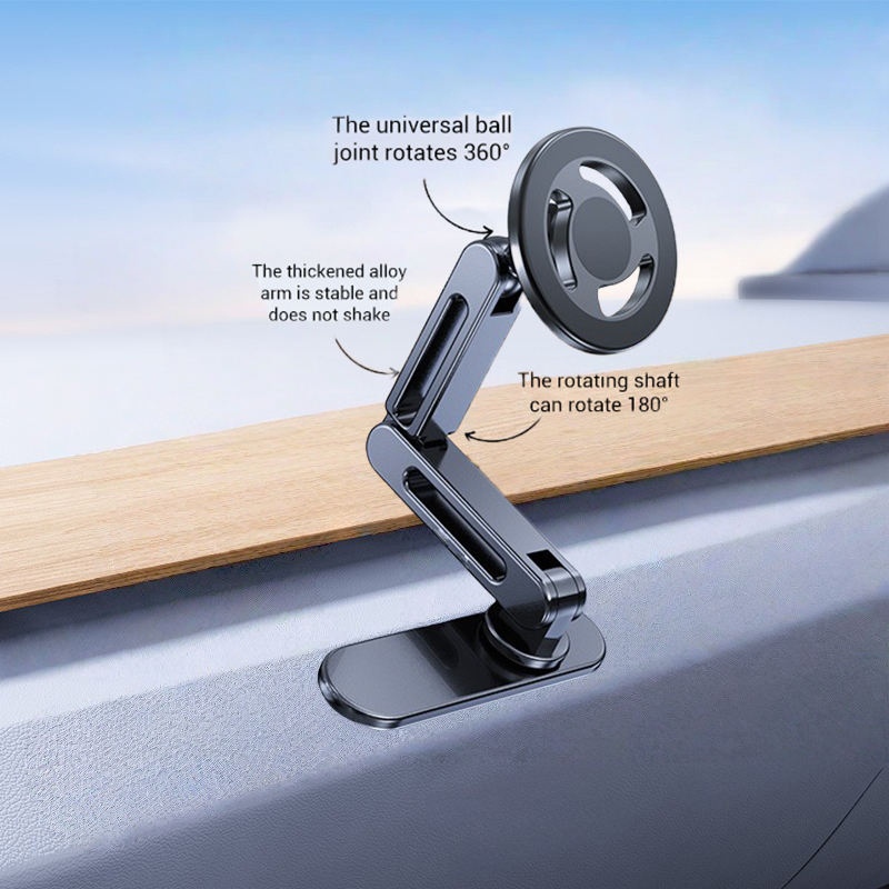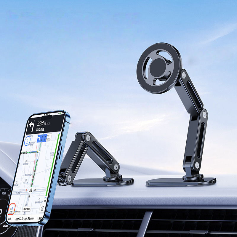 แท่นวางโทรศัพท์มือถือโลหะแบบพับได้สำหรับยึดแบบยึดติดกับแผงหน้าปัดรถยนต์แบบแม่เหล็กฐานยาว