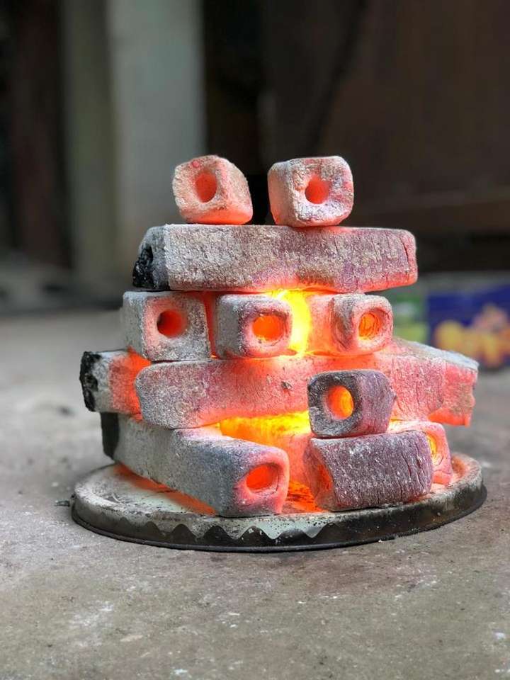 ถ่านก้อนมะพร้าวเผาเป็นเวลานานถ่านก้อนสีขาวจากโรงงานเวียดนามเนื้อแข็งลายวงกลมสำหรับมอระกู่และชิชา