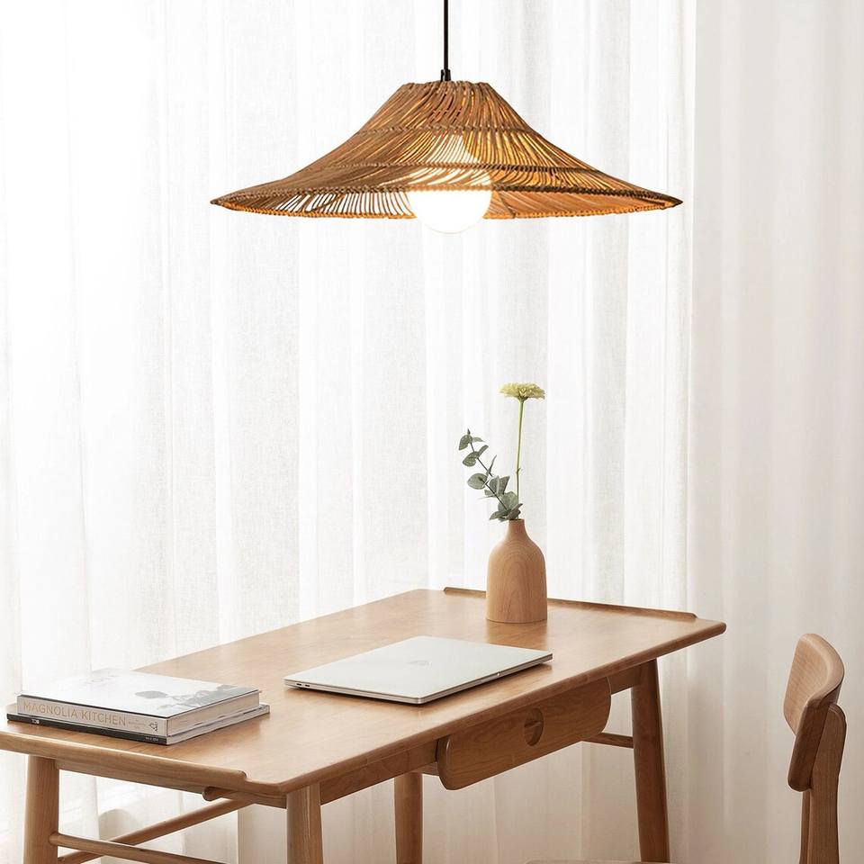 กรวยยาวทําด้วยมือในร่มแสงที่เรียบง่ายหวายสีเบจมินิโคมไฟวินเทจโคมไฟระย้าหวาย
