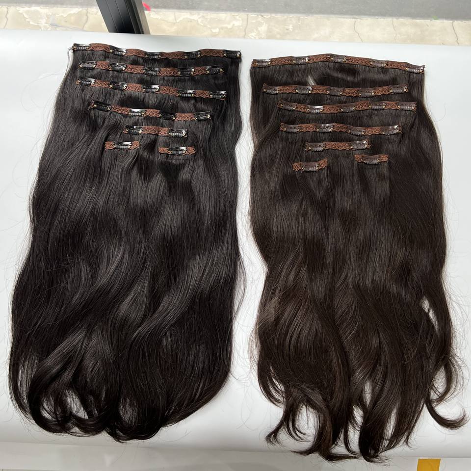 ผมต่อแบบหนีบผมมนุษย์บริสุทธิ์เวียตนามเรียงตามแนวยาว1B ธรรมชาติสีดำ/น้ำตาล