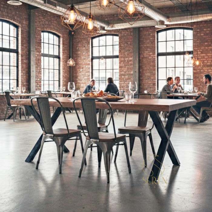 โต๊ะทานอาหารไม้เนื้อแข็งจากนักออกแบบชาวอินเดียทำมือสำหรับบ้านและร้านอาหารยาวทำด้วยมือโดยศิลปิน