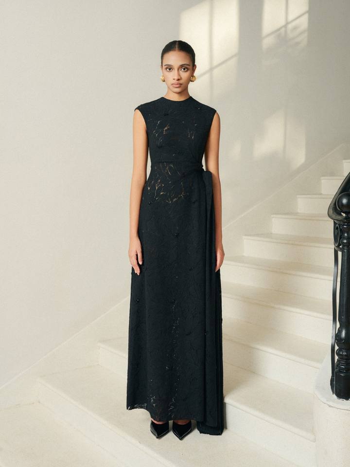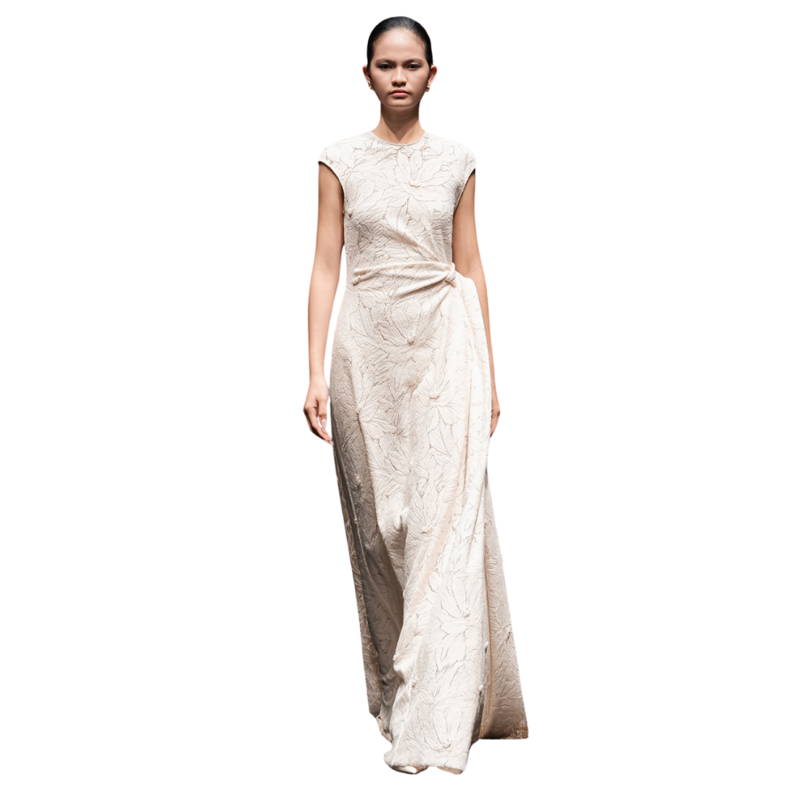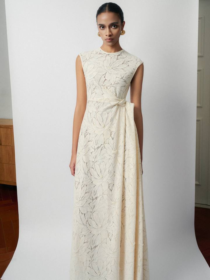 Nella EMB ชุดเดรสยาวมิดิผ้าลูกไม้สำหรับผู้หญิงเสื้อผ้า2025สีขาว