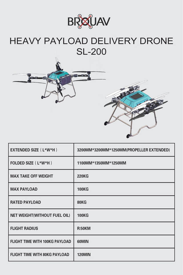 โดรนส่งของระยะไกลสำหรับการค้า แบบพับได้ ควบคุมผ่านแอพ กล้องถ่ายรูป บินได้นานกว่า 40 นาที ระยะบิน 10 กม. ควบคุมด้วยปุ่มเดียว