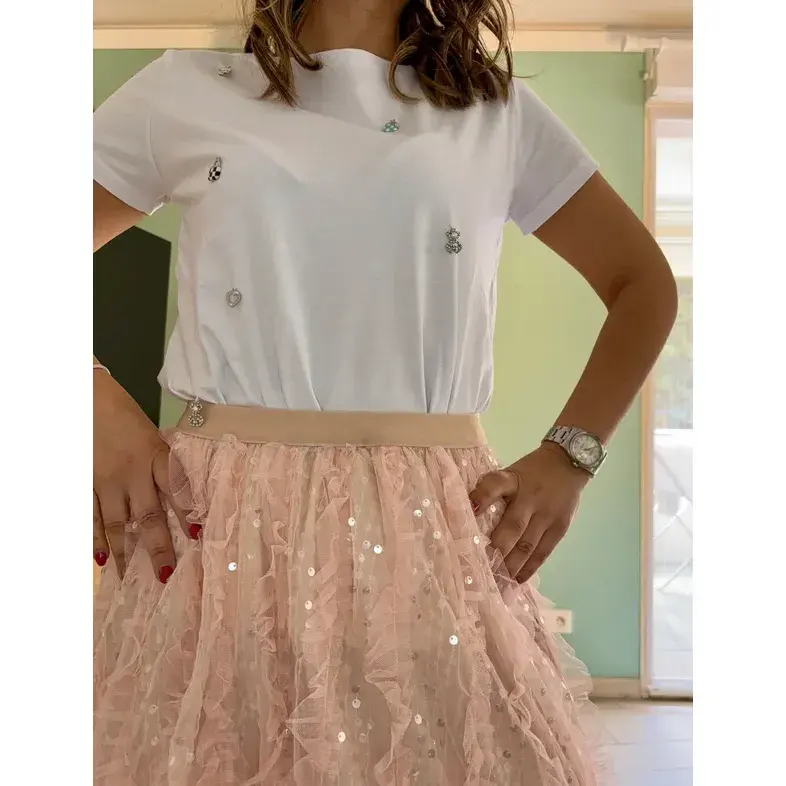 Long Elegant Pink Tulle Skirt Sequins Breathable Woolen Spandex Empire Waistline Digital Print Plus Free Available for Winter