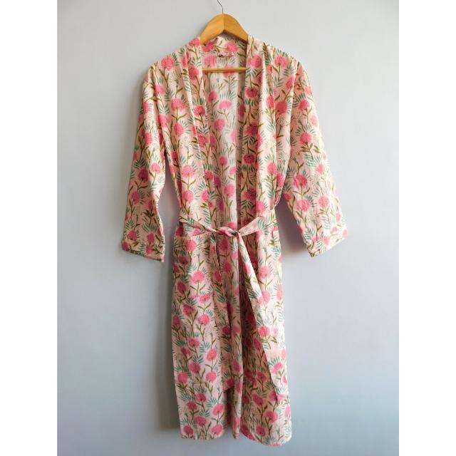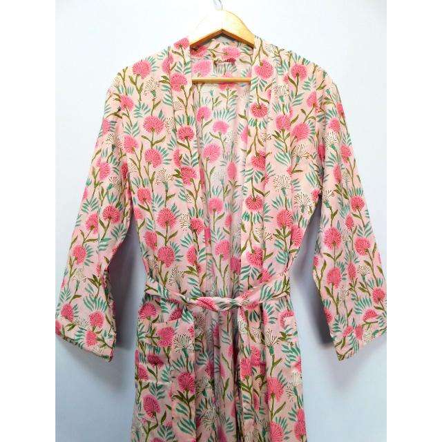 ชุดกิโมโนพิมพ์ลายดอกไม้ยาวนุ่มใส่สบายสำหรับกลางคืนเสื้อคลุมอาบน้ำผ้าฝ้ายชุดกิโมโนสำหรับเจ้าสาวเดินชายหาด