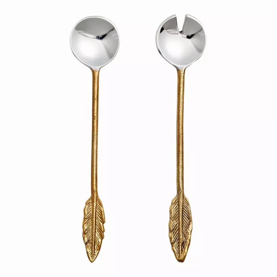 ชุดช้อนยาวหรูหราพร้อมด้ามจับโลหะเกรดอาหารงานแต่งงานในโรงแรมโต๊ะเสิร์ฟอาหารใช้ขายส่ง