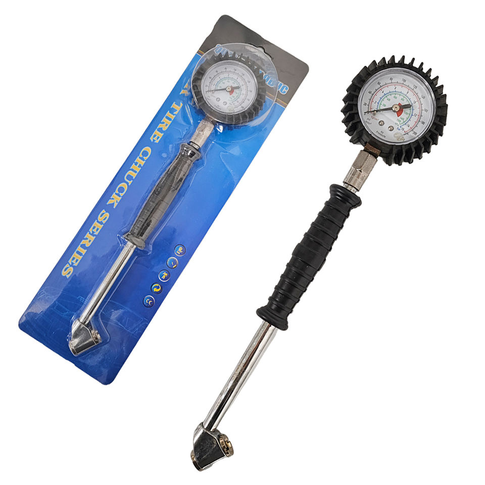 Long Handle Dual-Head Tire Inflator - Professional Grade with Integrated Pressure Gauge