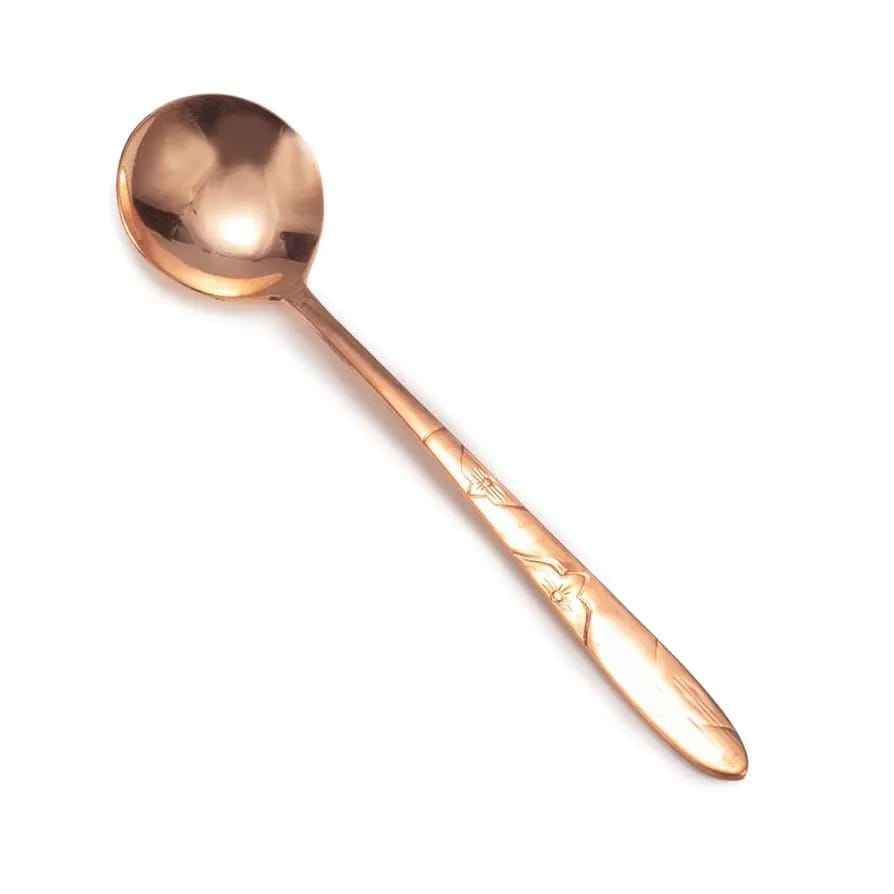 ช้อนทองแดงบริสุทธิ์ด้ามยาวพร้อมรายละเอียดงานฝีมือโบราณสำหรับการผสมและเสิร์ฟซุปร้อน