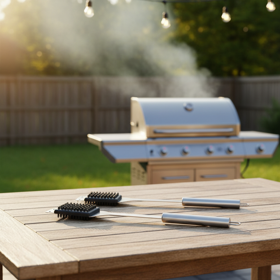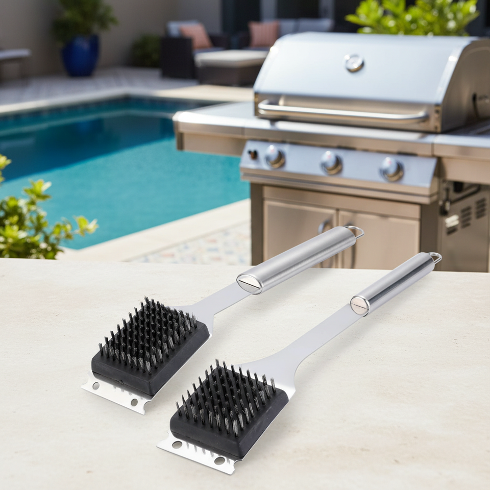 แปรงปิ้งย่างด้ามยาวทำจากลวดสแตนเลส ทนทาน ใช้กับเครื่องล้างจานได้ อุปกรณ์ทำความสะอาดอเนกประสงค์ สำหรับเตาปิ้งย่าง รับทำโลโก้ตามสั่ง