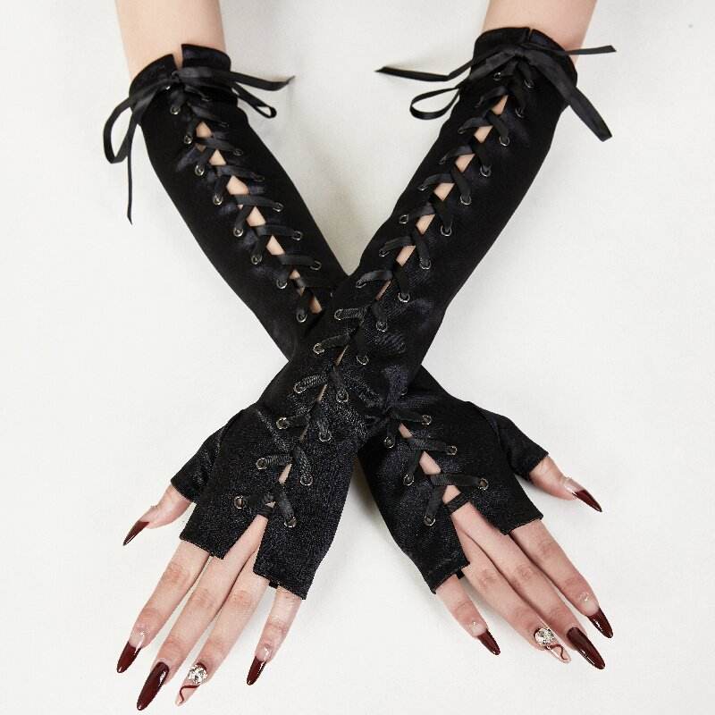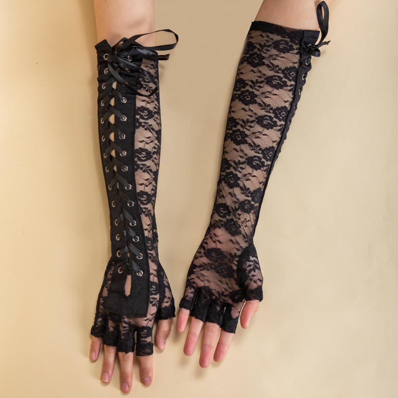 ถุงมือยาวครึ่งนิ้วสำหรับใส่ในฤดูร้อนถุงมือระบายอากาศได้ดีแบบตาข่ายสำหรับต่อเล็บถุงมือลูกไม้