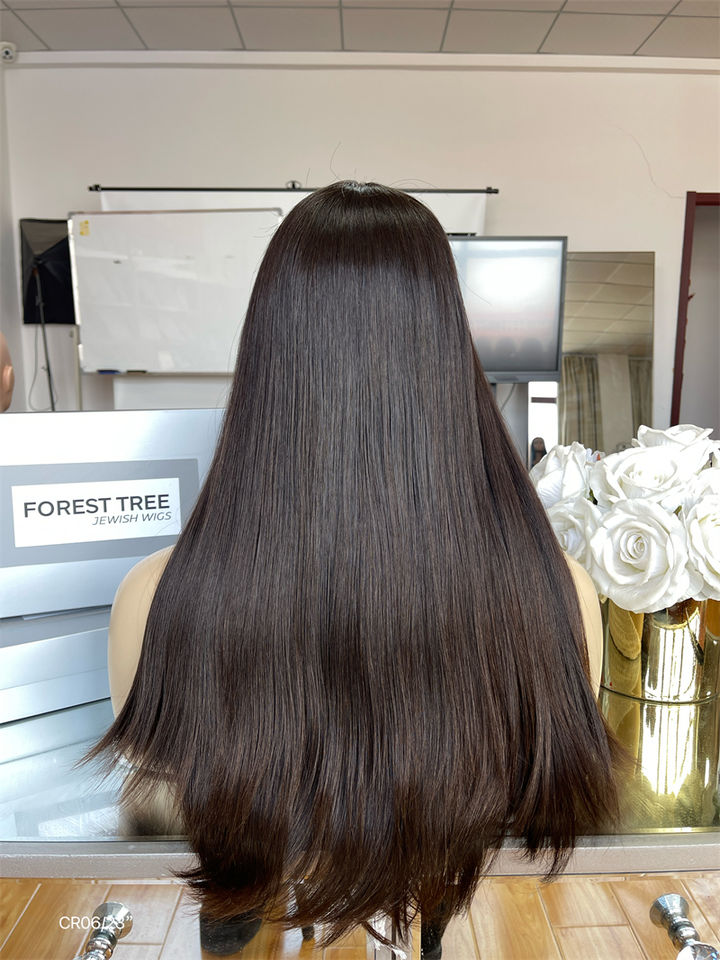 Long Human Hair 100% European Human Hair Wigs Jewish Wig Black Brown Color With Single Knot 5.0 For Hair Loss Women