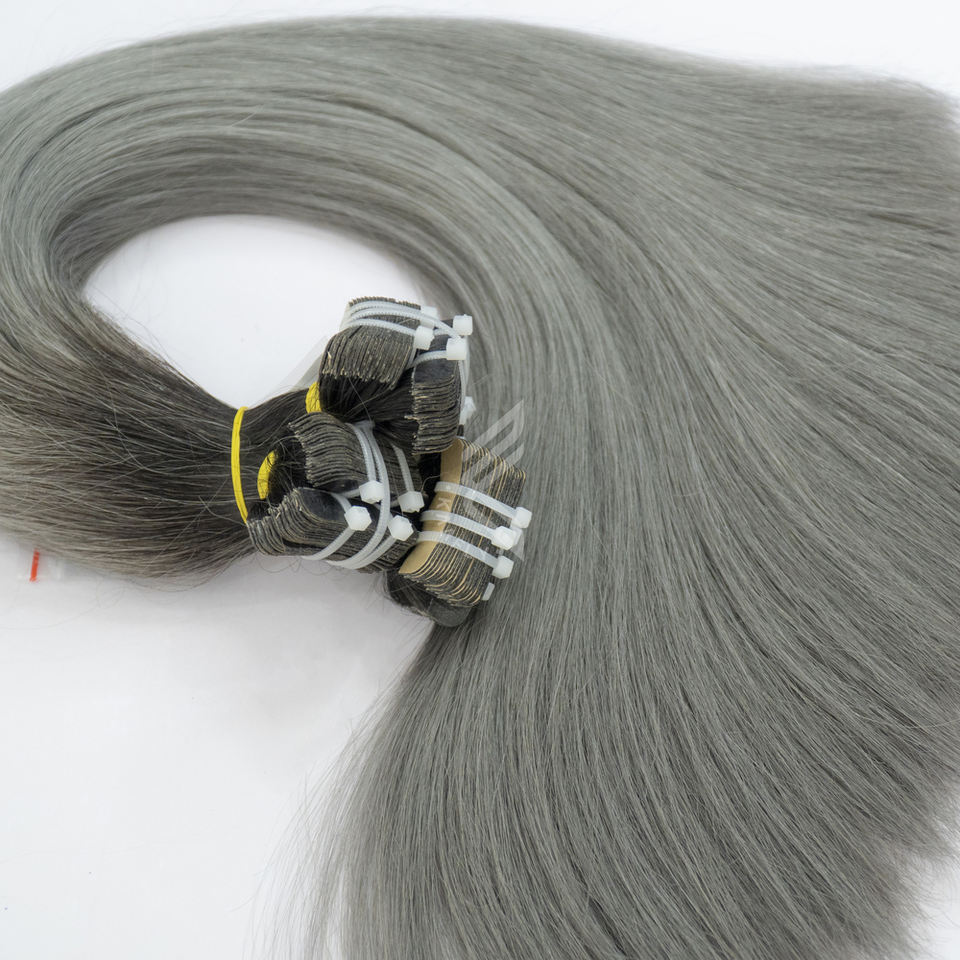 เทปติดหนังกําพร้า Ombre สีเทาล่าสุดยาวชิดชุดต่อผมมนุษย์รัสเซียผู้จัดจําหน่ายผมมนุษย์