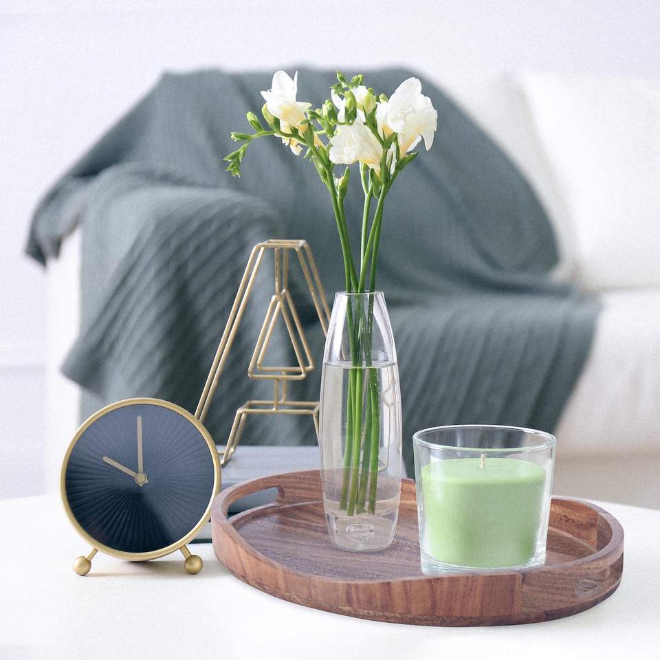 โต๊ะกาแฟห้องนั่งเล่น อาหารเช้าบนเตียง ชั้นวางเทียน