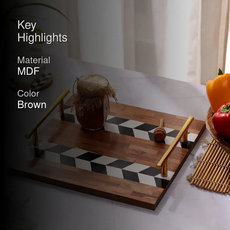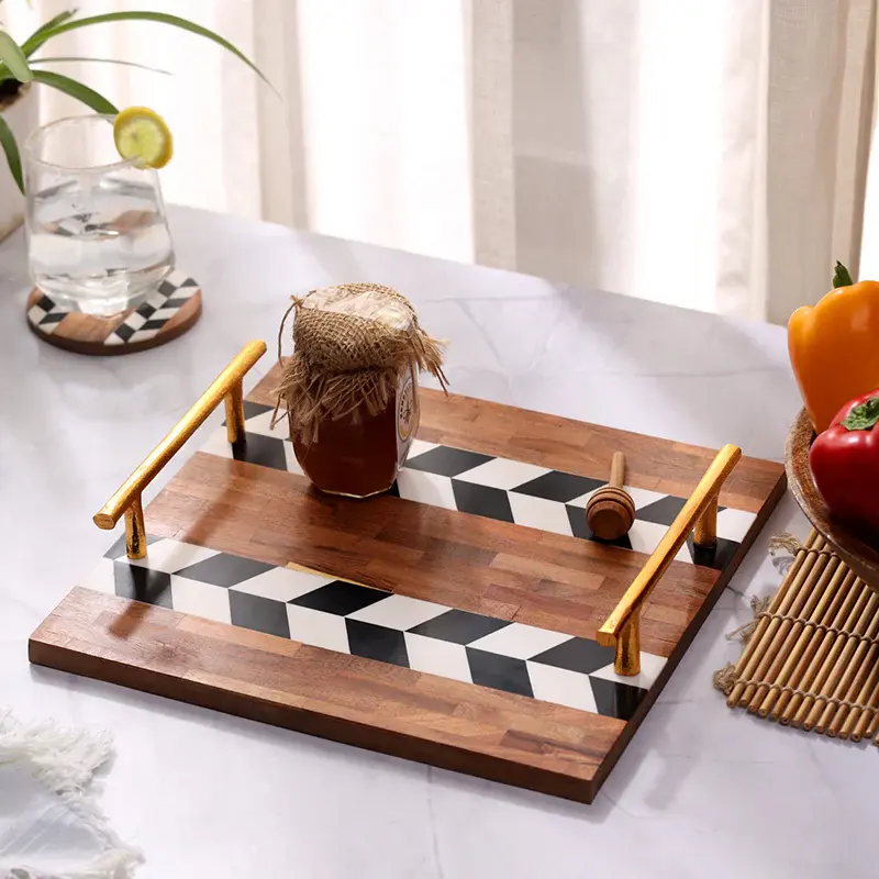 ถาดไม้ตกแต่งสุดหรู ทนทาน เป็นมิตรกับสิ่งแวดล้อม เหมาะสำหรับตกแต่งบ้าน ห้องครัว และโต๊ะกาแฟ
