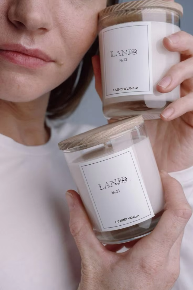 เทียนหอมดีไซน์สวย ติดทนนาน แบรนด์ส่วนตัว กลิ่นอโรมาเธอราพีสำหรับวาเลนไทน์ บรรจุขวดแก้ว LANJO ทำมือ ตกแต่งบ้านช่วงคริสต์มาส