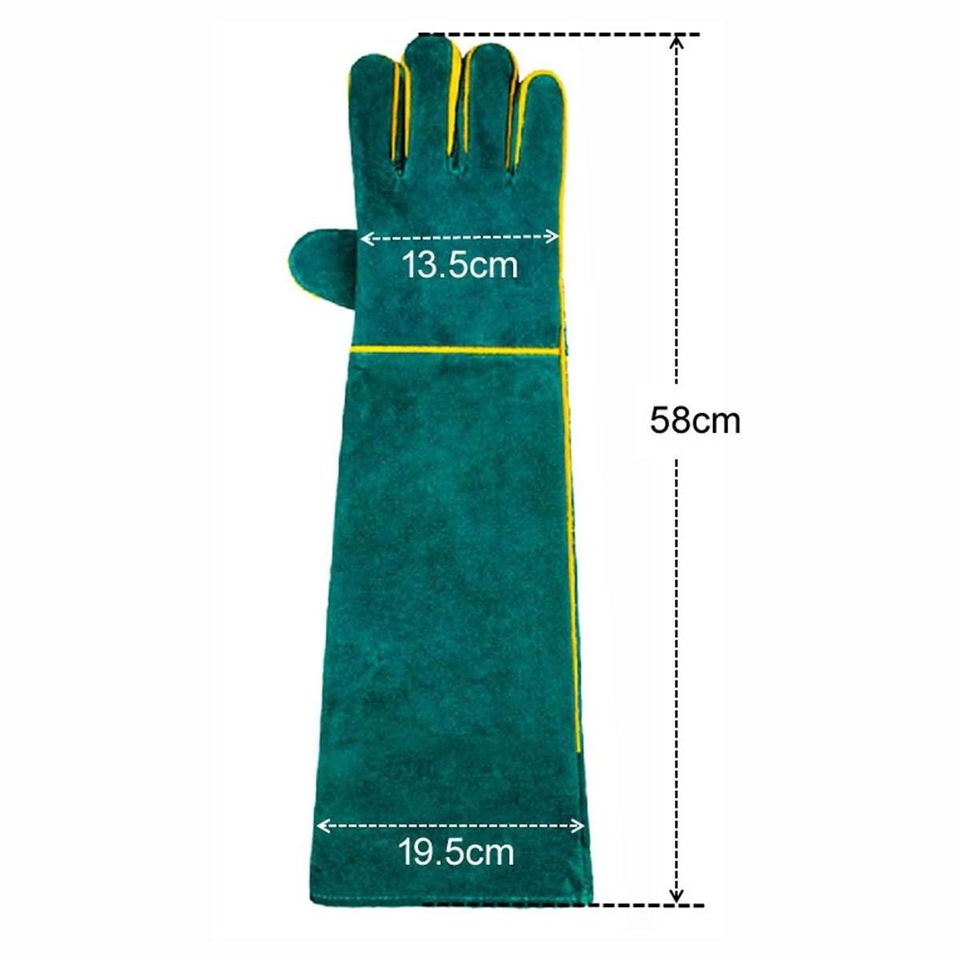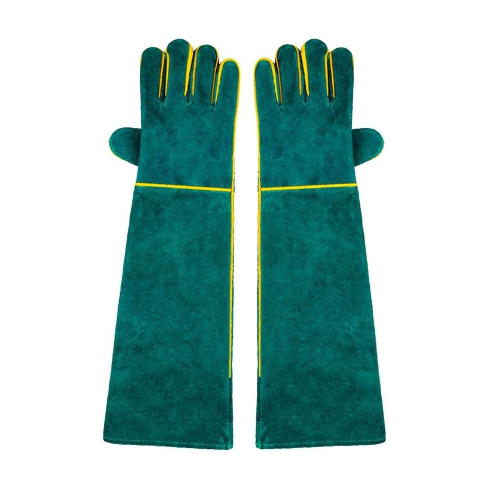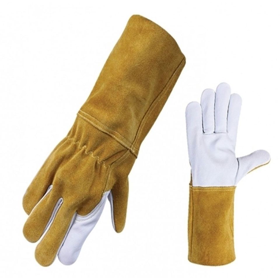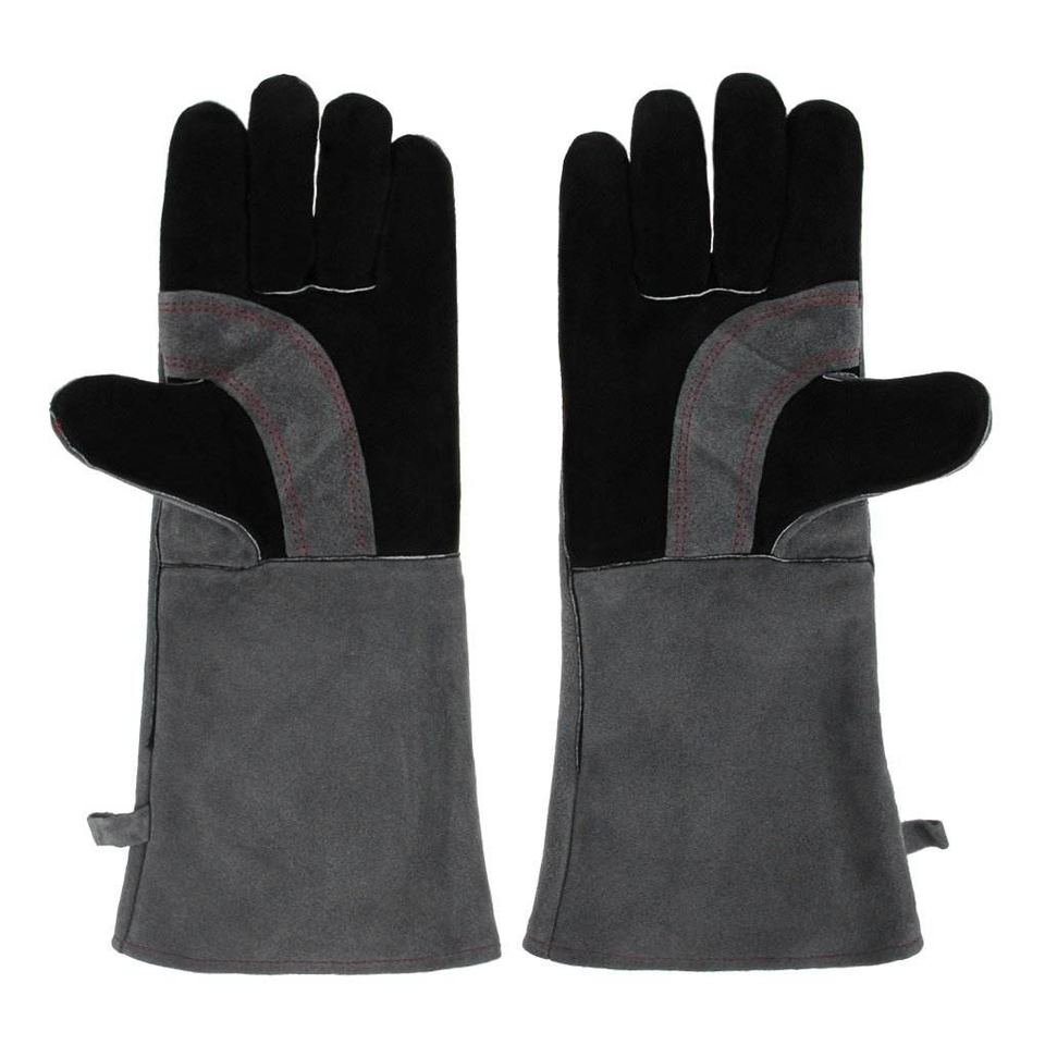 ถุงมือหนังวัวแท้ทนไฟ ป้องกันการลวก สำหรับงานอุตสาหกรรม ป้องกันมือและแขนสำหรับคนงานก่อสร้าง