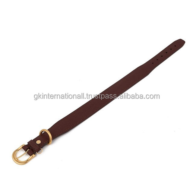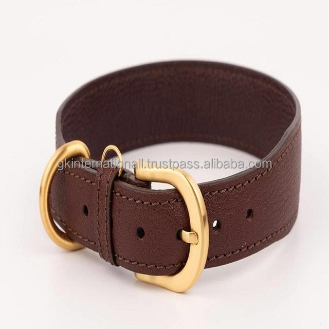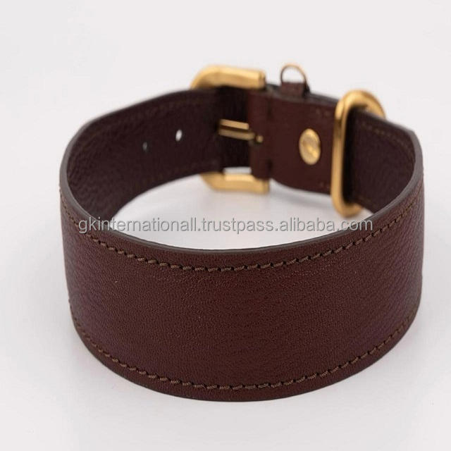ปลอกคอสุนัขหนังพรีเมี่ยมสีน้ําตาลกว้างพิเศษสําหรับงานหนักติดทนนานพร้อมหัวเข็มขัดทองเหลืองแข็งและการปรับแต่งแหวน D