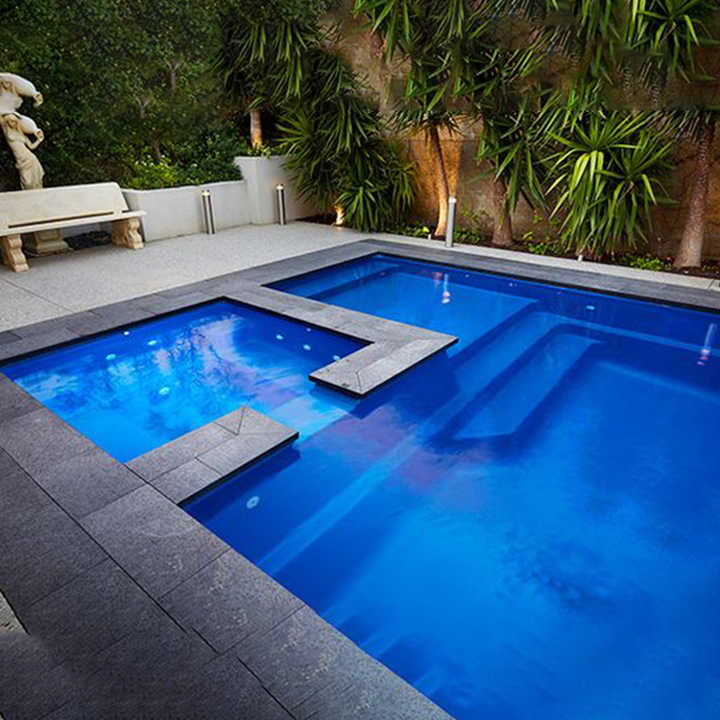 สระว่ายน้ำไฟเบอร์กลาสกลางแจ้งที่กว้างขวางใช้งานได้นานพลาสติกขนาดใหญ่และแข็งสำหรับใช้ในครอบครัว