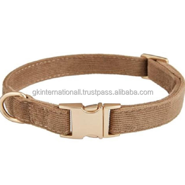 ปลอกคอสุนัขผ้าฝ้ายธรรมชาติดีไซน์ล่าสุดพร้อมปลอกคอสีโรสโกลด์อุปกรณ์เสริมสำหรับสัตว์เลี้ยงที่ปรับแต่งได้เต็มรูปแบบติดทนนาน