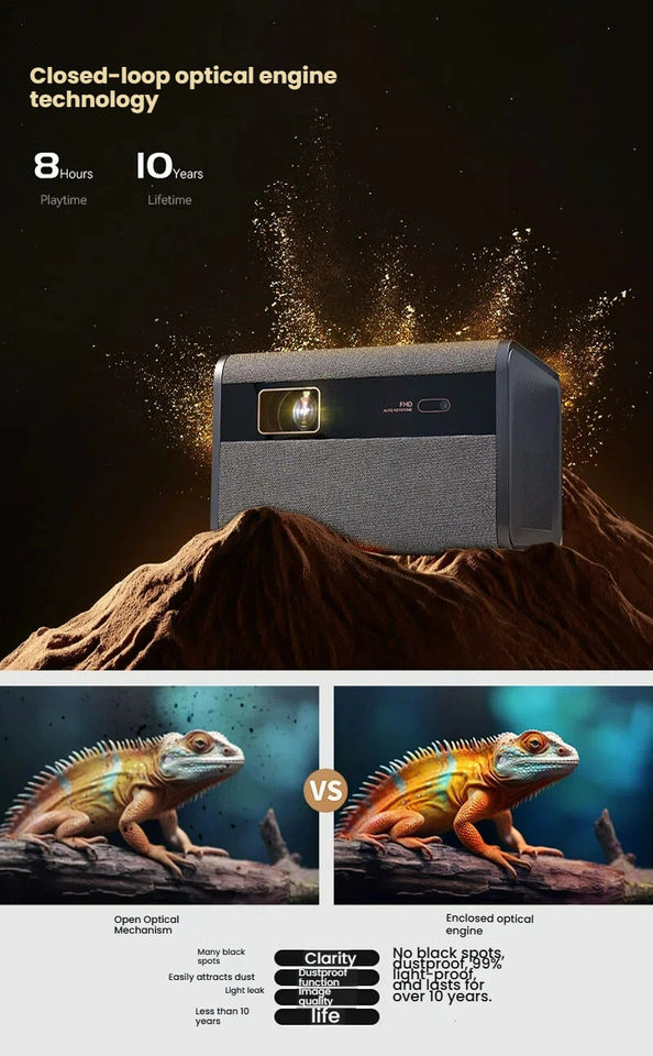 โปรเจคเตอร์ Full HD 1080P แบบออพติคอลที่มีอายุการใช้งานยาวนานพร้อมชิพ H713พอร์ตที่หลากหลายสำหรับการเล่นภาพยนตร์กับครอบครัว