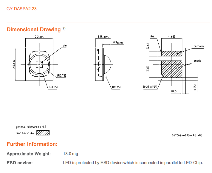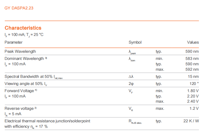 Osrams osconiq P 2226 GY DASPA2.23ซีรีส์580-595nm สีเหลือง0.22W ชิปเซรามิก16LM LED รับประกัน3ปี