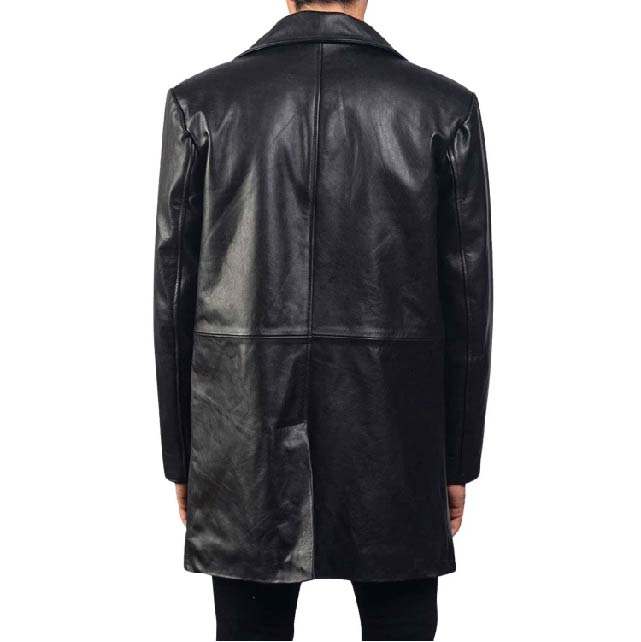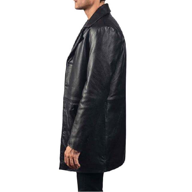 Long Men's Premium Leather Autumn Stand Collar Windproof Breathable Overcoat Outerwear High Quality Durable