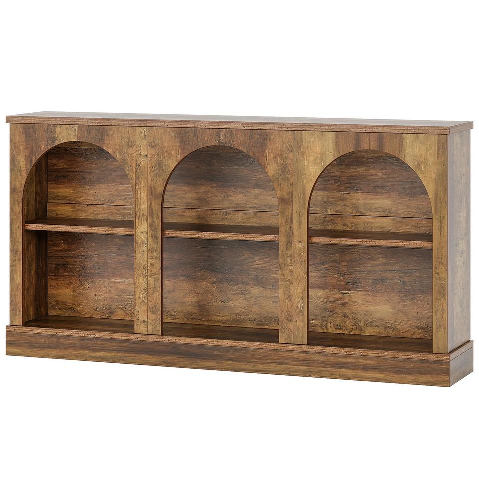 โต๊ะคอนโซลทางเข้าห้องนั่งเล่นสไตล์โมเดิร์นทรงยาว ดีไซน์โค้ง 3 ช่อง สำหรับวางหลังโซฟา พร้อมที่เก็บของ