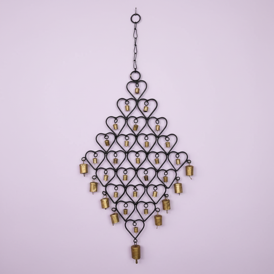 กระดิ่งลมโลหะรูปหัวใจยาว พร้อมหัวใจเล็ก 25 ชิ้น กระดิ่งลมติดผนัง ดีไซน์ใหม่สไตล์โบราณ หรูหรา ขายส่ง