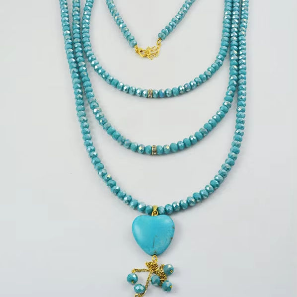 สร้อยคอยาวพลอยสีฟ้าครามและลูกปัดสีฟ้า