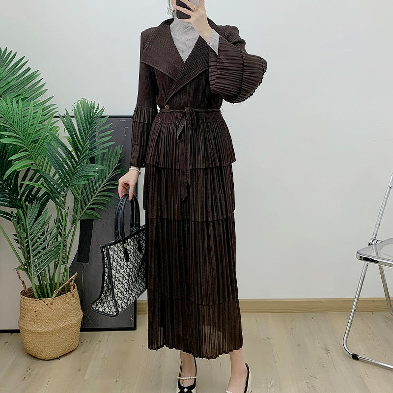 เดรสอัดพลีตยาวของผู้หญิงชุดเดรสผู้หญิงคอปกลูกไม้ขึ้นแขนยาวแบบอินเดียปากีสถานชุดเดรสลำลองสุดหรูขายส่งจากโรงงาน