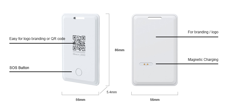 บัตรสมาร์ทการ์ดระยะไกล BLE Lorawan พร้อมปุ่ม SOS ชาร์จแม่เหล็กได้ สำหรับติดตามบุคลากร