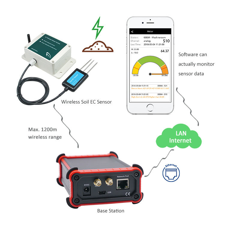 ชื่อผลิตภัณฑ์:เซ็นเซอร์วัดความชื้นในดิน EC แบบไร้สายรีโมตคอนโทรลระบบส่งน้ำระยะไกล