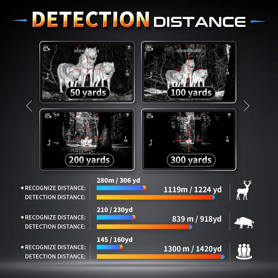 Long Range Thermal Scope 1300m Thermal Imaging Monocular Built in Laser Rangefinder Night Vision Video Recording APP Support