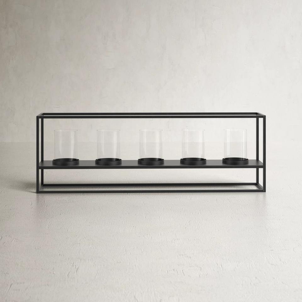 เชิงเทียน5สีทรงสี่เหลี่ยมยาว | กรอบกล่องโลหะสีดำเรียบง่ายทันสมัยสำหรับวางกลางโต๊ะรับประทานอาหาร