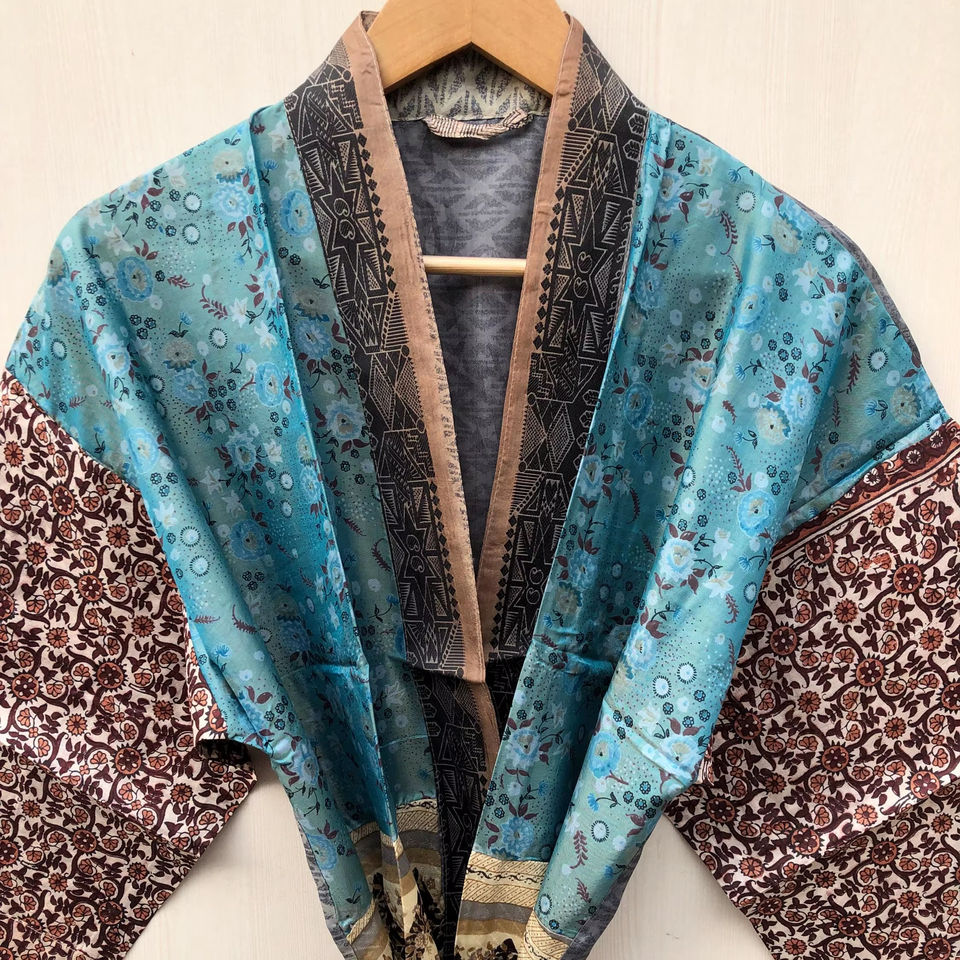 ชุดคลุมกิโมโนผ้าไหมยาวสวยงาม สไตล์รีสอร์ท โบโฮ คอลเลคชั่นสำหรับผู้หญิง ชุดคลุมชายหาดสำหรับวันหยุดฤดูร้อน ชุดคลุมกิโมโนเซ็กซี่