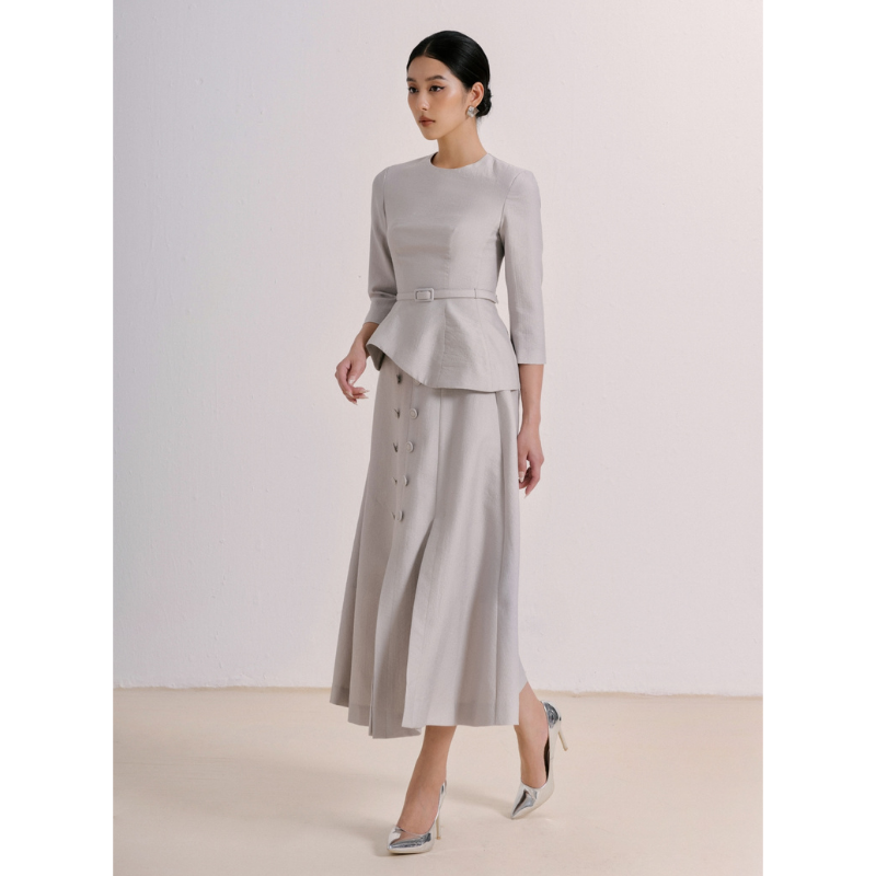 Long Skirt for Women Front Buttons JOCELYN A-LINE SKIRT 79% Rayon 17%Nylon 4%Poly Elegant Formal Womens Clothing WHITE ANT