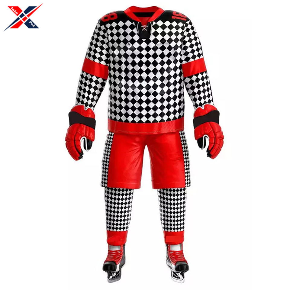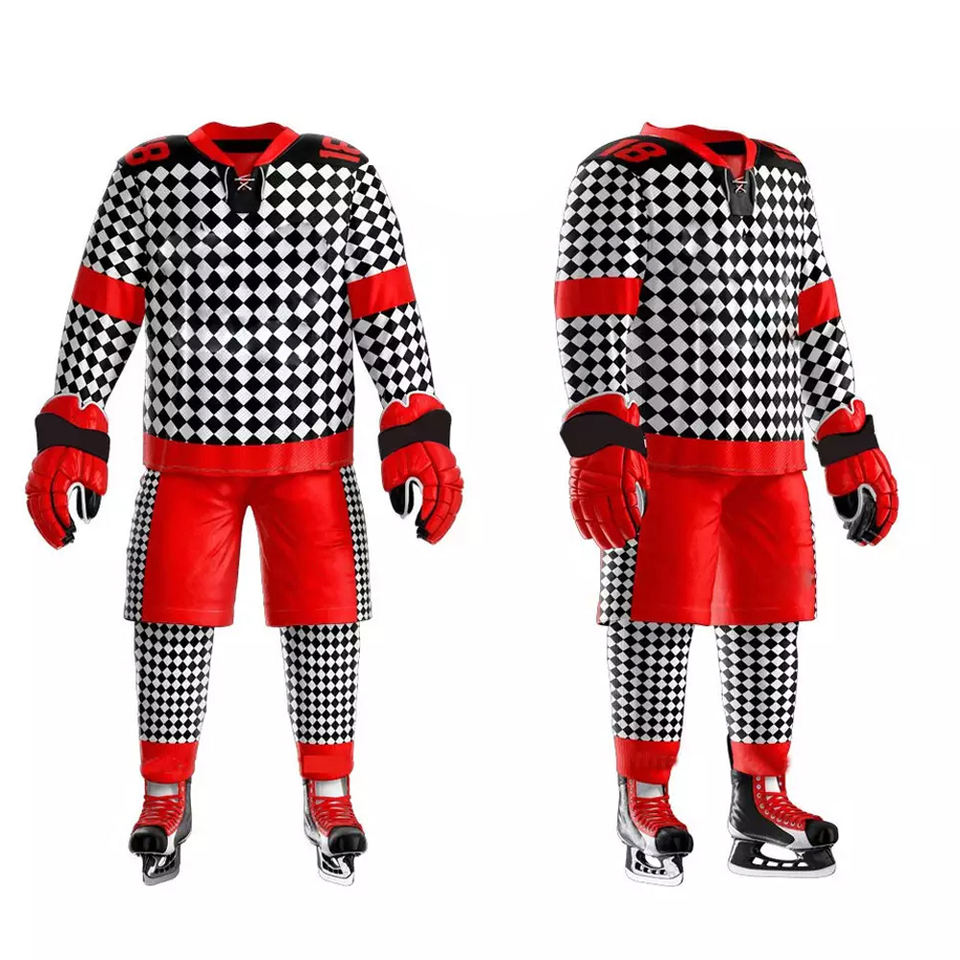 Long Sleeve Black and Red Block Stylish Newest Product Sports Team Wear Best Material Use Adult Ice Hockey Uniforms