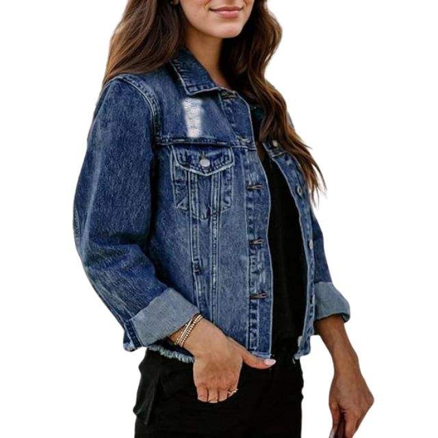 เสื้อโค้ทยีนส์ทรงทรัคเกอร์ แขนยาว ติดกระดุม สไตล์ลำลอง สำหรับผู้หญิง ทรงโอเวอร์ไซส์ สีน้ำเงินฟอก ผ้าเดนิม เหมาะสำหรับฤดูหนาว