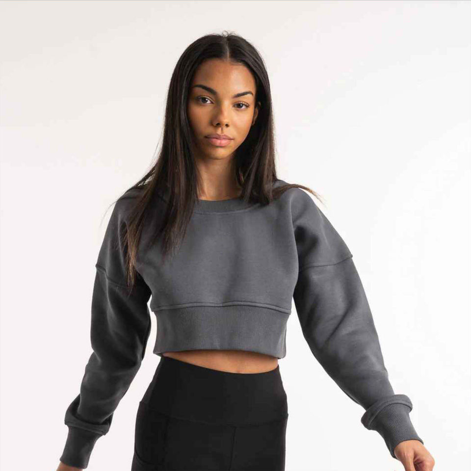 เสื้อครอปแบบสวมหัวแขนยาวคอกลมเสื้อครอปแบบลำลองสีพื้นออกแบบโลโก้ได้ตามต้องการสำหรับผู้หญิงระบายอากาศได้ตามต้องการ