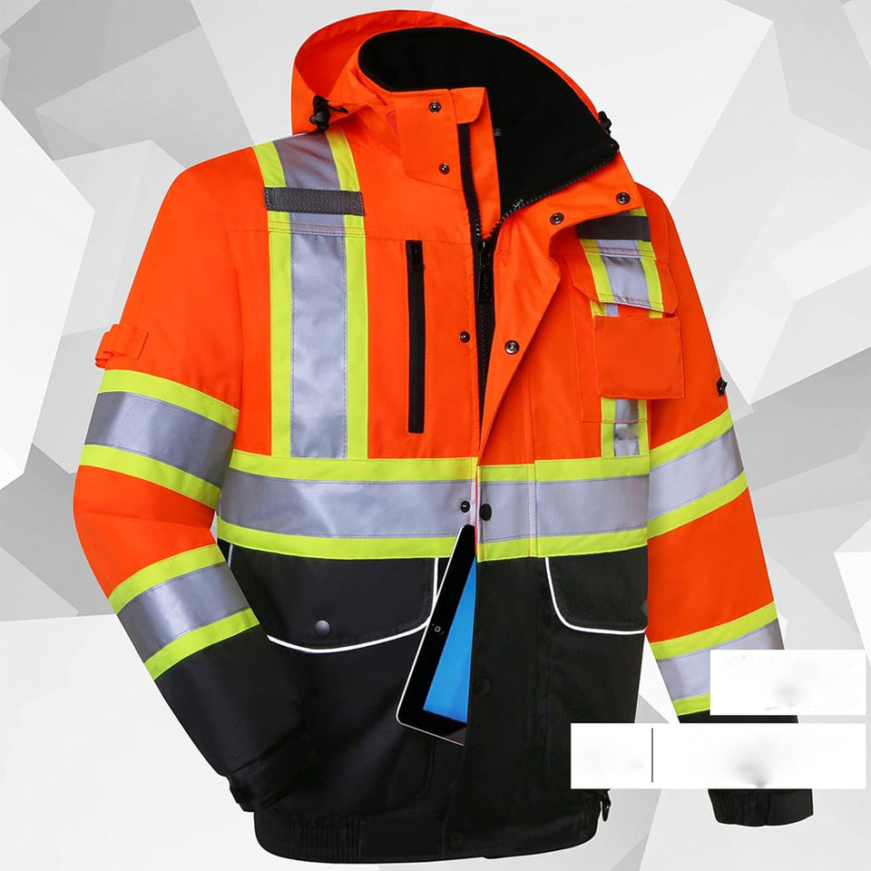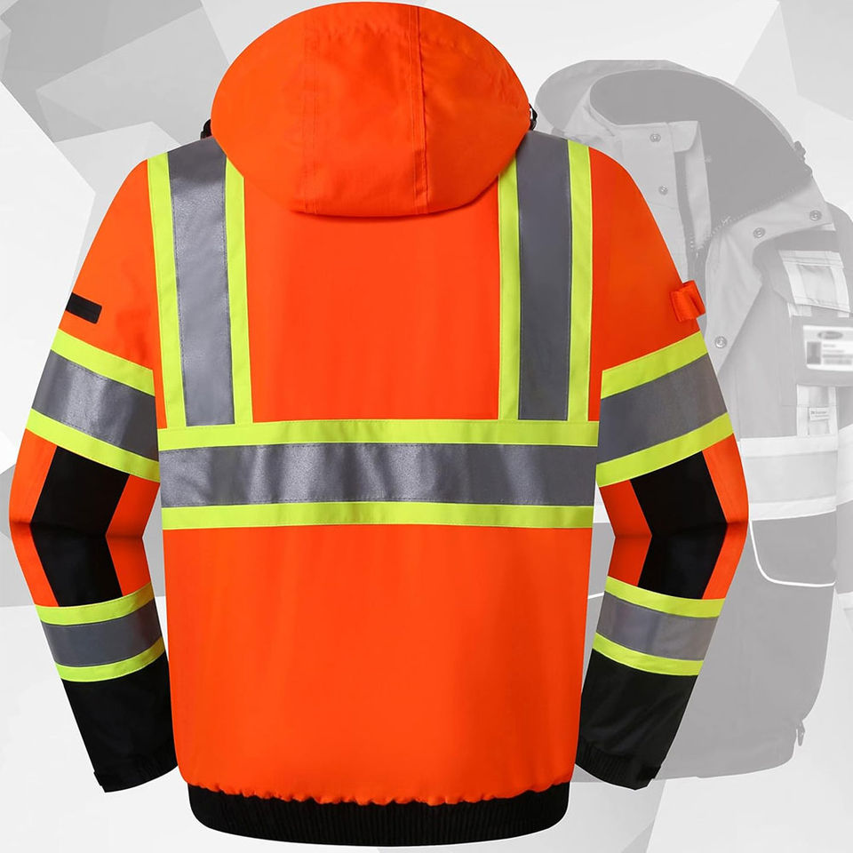 เสื้อแจ็คเก็ตทำงานแบบใหม่สำหรับผู้ชาย มาตรฐาน ANSI ระดับ 1 สะท้อนแสงสูง สวมใส่สบาย แขนยาว ปรับแต่งโลโก้ สี และขนาดได้