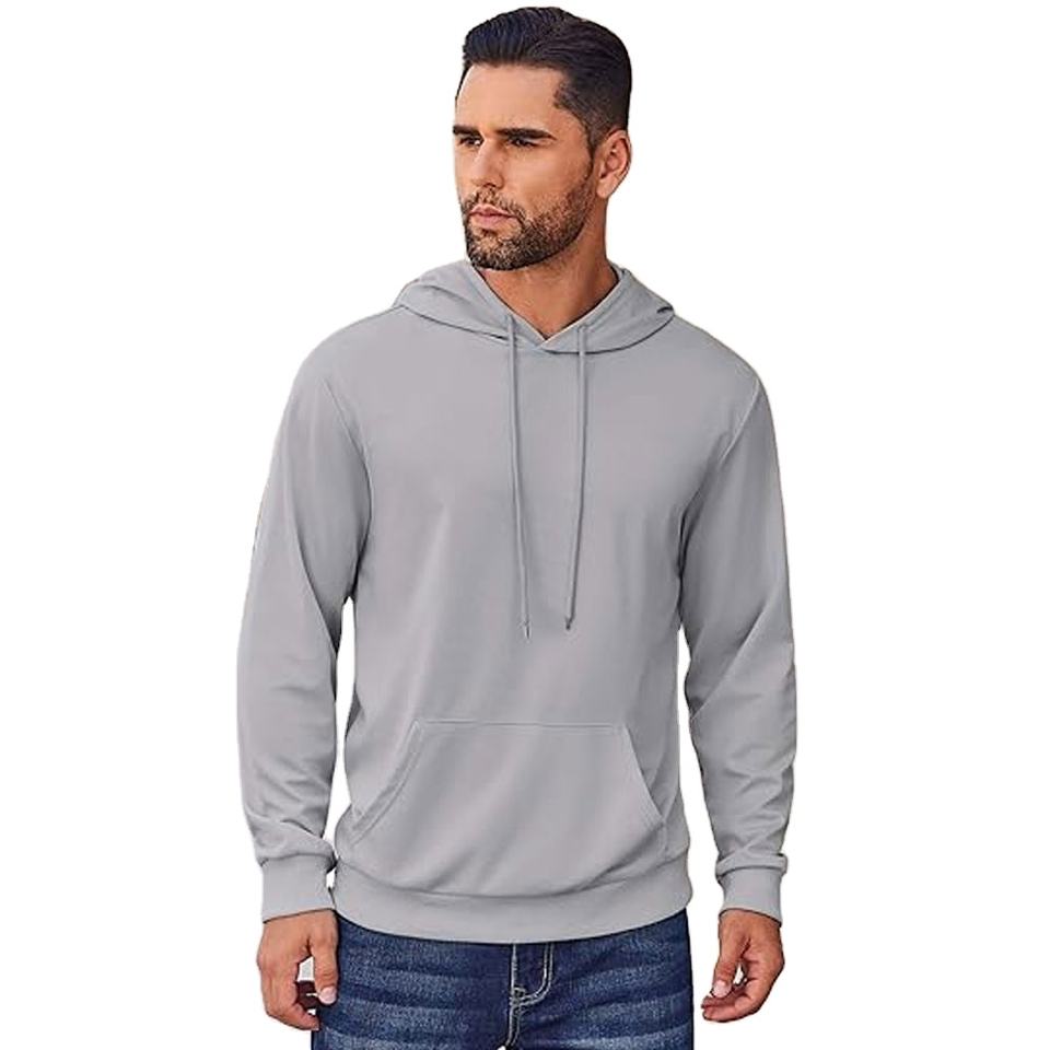เสื้อมีฮู้ดแขนยาวมีเชือกรูดแฟชั่นน้ำหนักเบาแบบไตรผสมเสื้อฮู้ดสไตล์สตรีทมีดีไซน์เรียบ