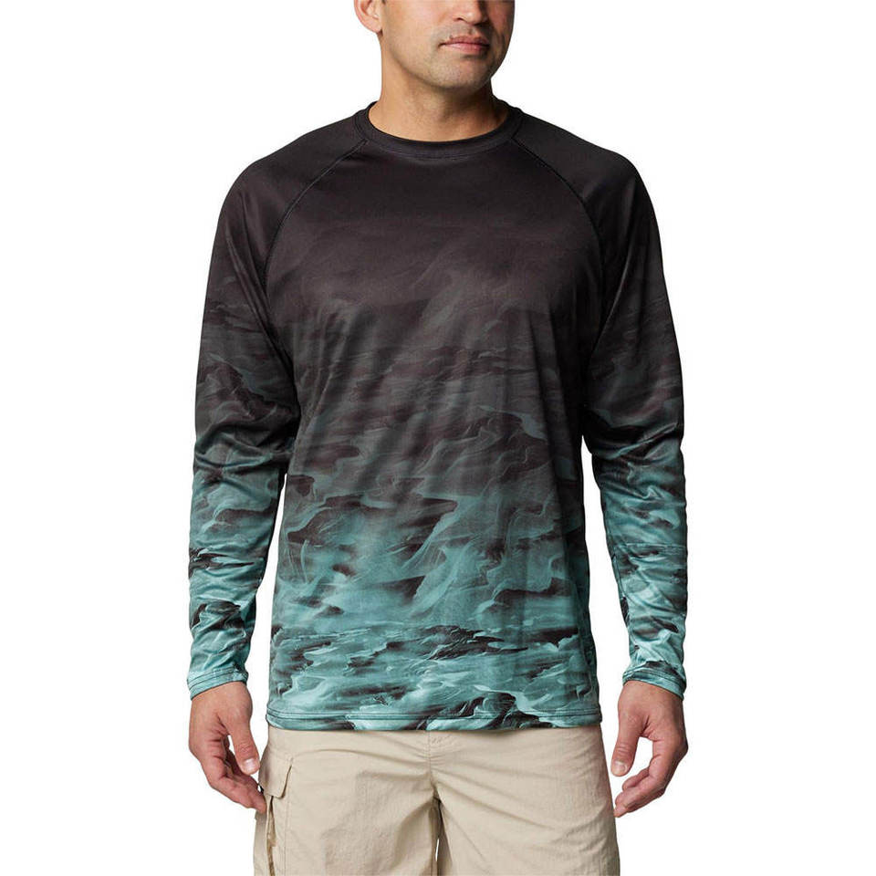 เสื้อตกปลาแขนยาวผ้าสแปนเด็กซ์วัสดุโพลีเอสเตอร์สำหรับผู้ชายเสื้อตกปลาเข้ารูปปรับแต่งได้