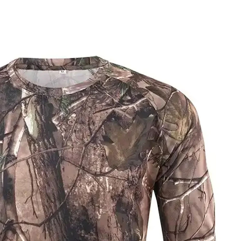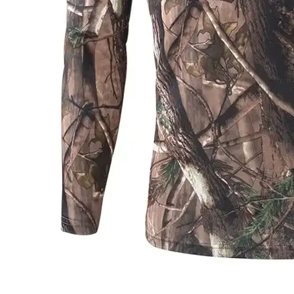เสื้อยืดแขนยาวลายพรางป่าสำหรับนักล่า ให้ความอบอุ่นและยืดหยุ่น เหมาะสำหรับใช้ในฤดูใบไม้ร่วง เสื้อยืดสำหรับนักล่าชาย