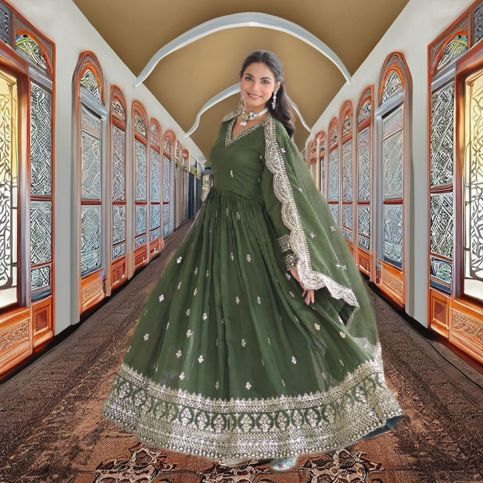 ชุดเดรสแขนยาว VISHNU K DESIGNS ผ้าไหมวิชิตรากับผ้าคลุมไหล่ ประดับด้วยเลื่อมและงานปักดิ้นทอง เหมาะสำหรับทุกฤดูกาล