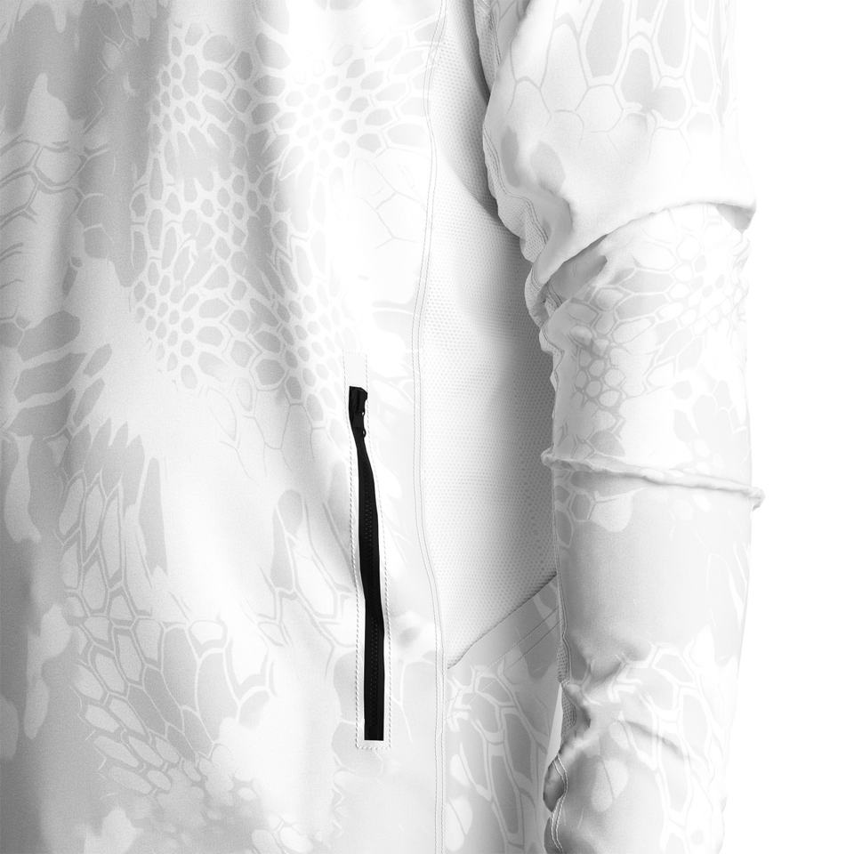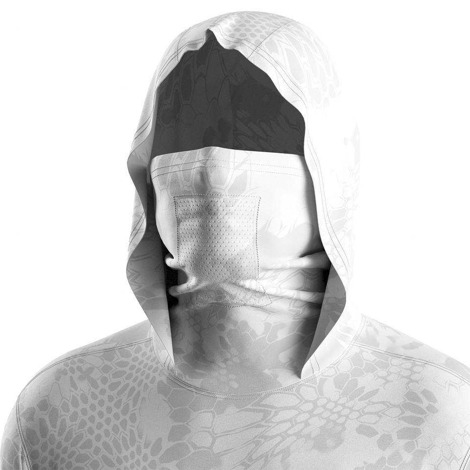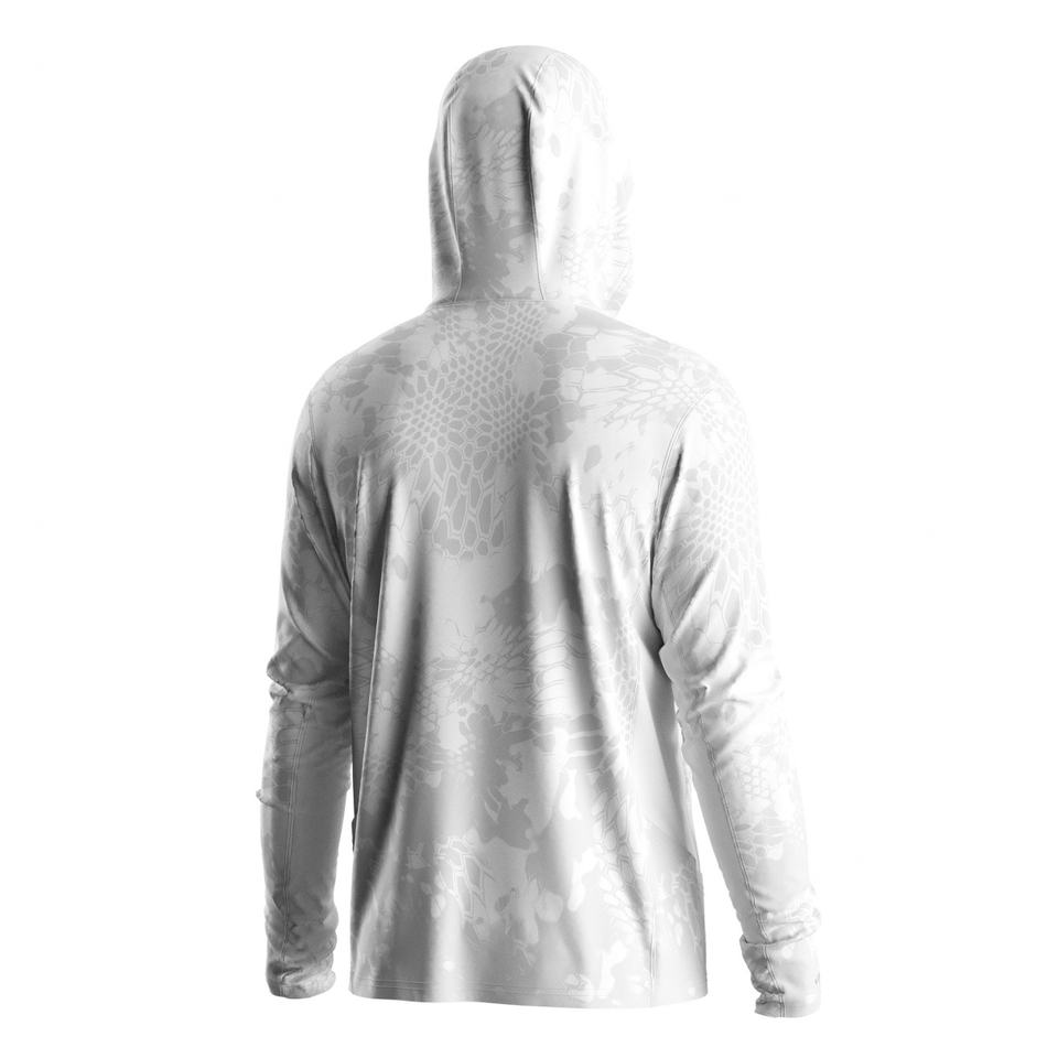 Long-Sleeve Hooded Fishing Shirt with UPF50+ Sun Shield, Moisture-Wicking Properties, and Heat Ventilation Mesh Panels